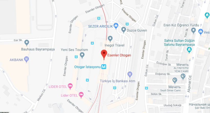 Автобусы компании Metro ежедневно выезжают в Гёреме в 21:15 и 22:00 от автовокзала Esenler Otogarı, расположенного в районе Bayrampaşa на Altıntepsi Mh. Путь в Гёреме они преодолевают за 11 часов.