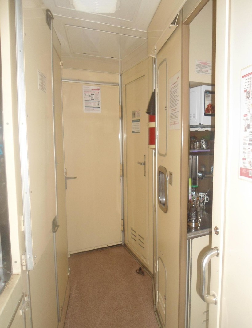 Большинство купе четырехместные, кроме последнего. То купе расположено возле туалета, и в нем 2 места – одно верхнее, другое нижнее. Такое удобно тем, кто путешествует вдвоем и не любит соседей.
