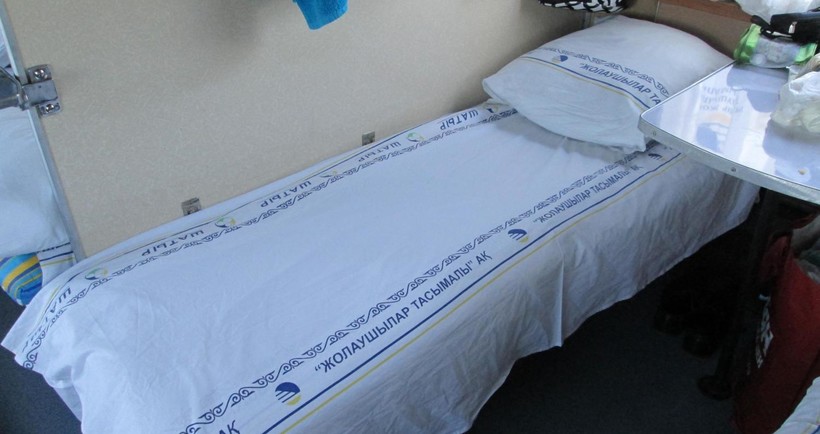 При входе в поезд нам выдали белье. Оно было чистеньким и новым, украшенным казахским орнаментом: