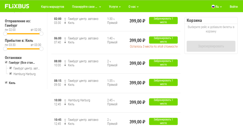 Наиболее удобный способ оплатить проезд (лично для меня) — это совершить покупку на официальном сайте перевозчика. Наши карточки прекрасно проходят. Также есть возможность приобрести билет в специализированных офисах продаж фирмы Flixbus.