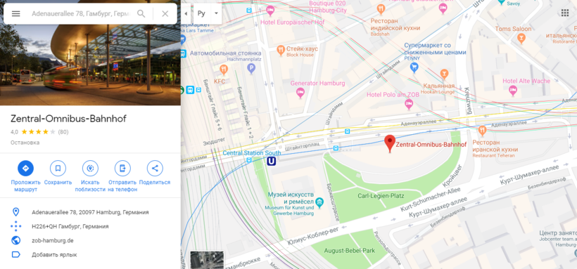 Большинство автобусов отправляется от автовокзала Гамбурга.