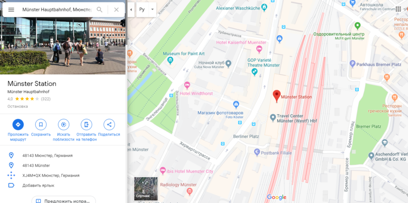 Отправление с автовокзала Мюнстера, расположенного возле главного ж/д вокзала.