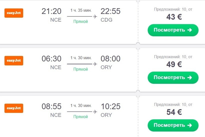 Лететь из Ниццы в Париж всего лишь полтора часа. Авиарейсов выполняется много — около 10–15 в день. Перелеты по этому маршруту осуществляют Air France и EasyJet.