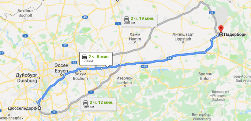 Дюссельдорф и Падерборн разделяют всего 170 км, которые проехать по немецким дорогам можно всего за 2 часа.