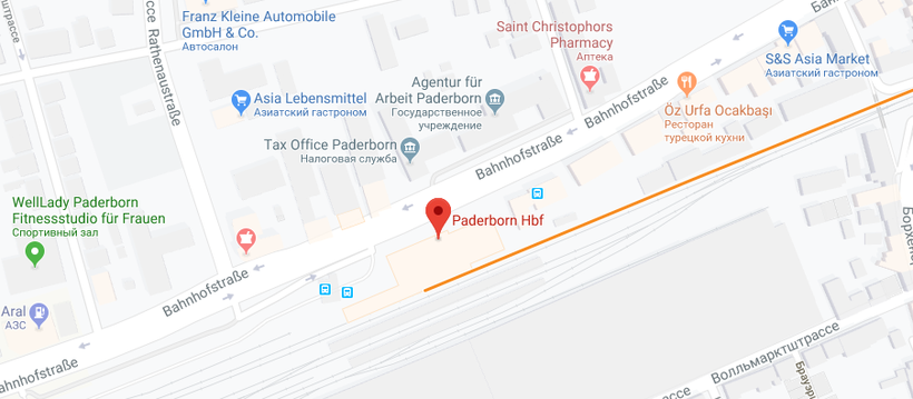 В Падерборн поезда прибывают на ж/д вокзал на Bahnhofstraße 29.
