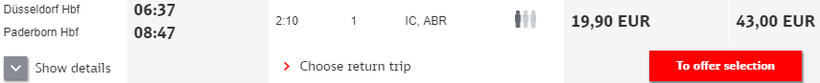 Для тех, кто хочет сэкономить, рекомендую ехать по маршруту с пересадкой в Дортмунде. По времени поездка с пересадкой займет также около 2 часов. Хочу предупредить, что поезда в Германии часто задерживаются, поэтому такой вариант преодоления маршрута немного рискованный.