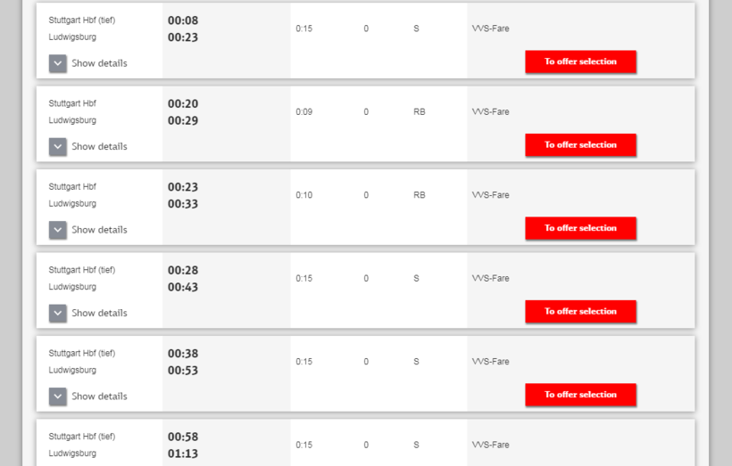 Мой выбор пал на поезд, это самый выгодный транспорт по этому маршруту. Я купил дневной проездной и съездил в Людвигсбург и обратно. Еще и по Штутгарту покатался основательно, так что проездной окупился больше, чем в два раза!