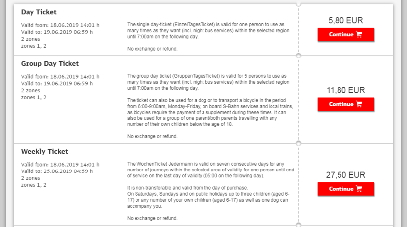 А тут начинается самое интересное! Все зависит от вашей активности. Одноразовый билетик (Single Ticket Adult) стоит 2,75 евро (200 рублей). Дневной проездной (Day Ticket) на одного человека (он действует еще и на весь городской транспорт Штутгарта) стоит 5,80 евро (416 рублей). Такой же проездной для группы до 5 человек (Group Day Ticket) обходится в 11,80 евро (850 рублей). Если вы будете активно перемещаться в пределах земли Baden-Württemberg, тогда имеет смысл приобрести земельный билет за 24 евро (1720 рублей). Думайте сами, решайте сами. :)