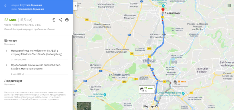 В Людвигсбург ехать около 20–30 минут. Заблудиться у вас не получится, ведь указателей по дороге хватает.