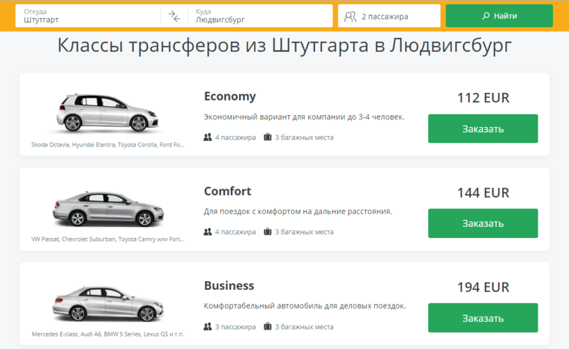 Не могу причислить себя к людям, которые не считают деньги. Но перед поездкой прорабатываю все возможные варианты проезда. Случаи ведь бывают разные, нужно ориентироваться в ценах. Такси в Германии туристу проще всего заказать у стойки администратора отеля, причем не обязательно вашего. Можно зайти в любой, вам не откажут. Время в пути до Людвигсбурга будет такое же, как и на автомобиле — около получаса. А вот цена кусается нещадно — от 112 евро (8035 рублей) за машину в одну сторону!