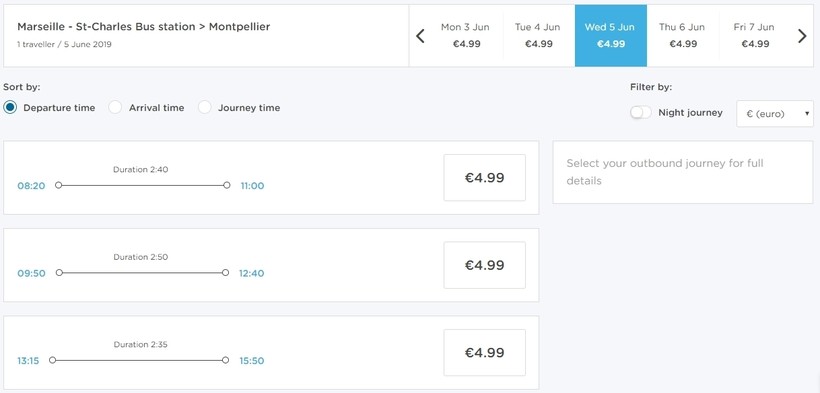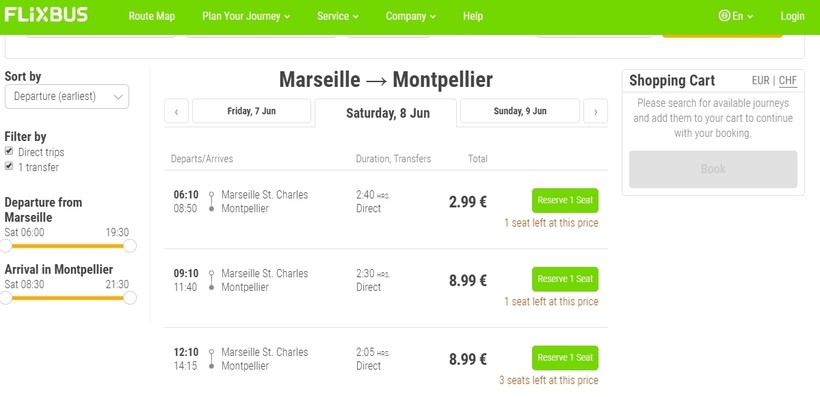 Направление Марсель — Монпелье обслуживает компания Flixbus.