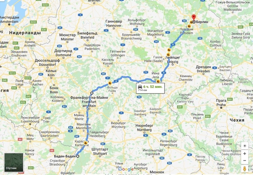 Баден-Баден — Берлин — маршрут на карте