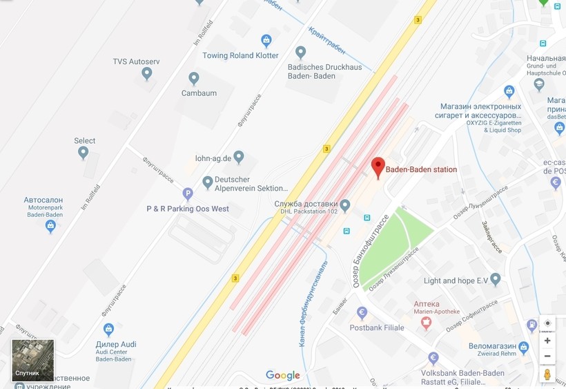 скоростные поезда Intercity-Express (ICE). Отправляются поезда от ж/д станции Баден-Баден (Baden-Baden station) на Ooser-Bahnhofstraße 4.