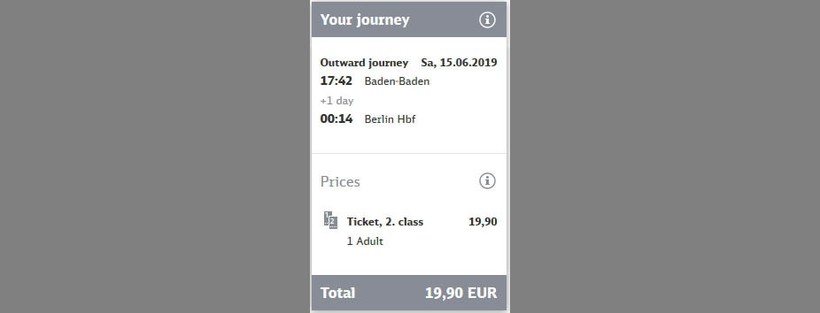Билет можно купить на сайте немецкого железнодорожного оператора, в кассе ж/д вокзала или в автомате на ж/д вокзале.