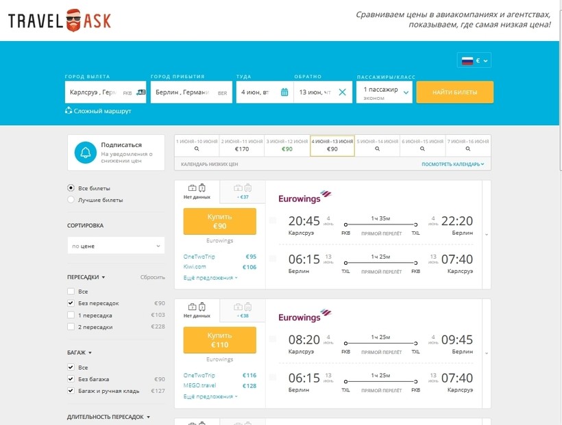 Также можно купить билеты и на сайте авиакомпании Eurowings.