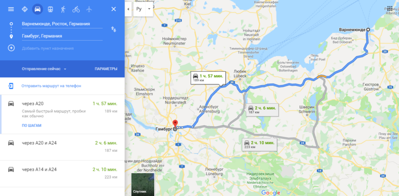 Из Варнемюнде в Гамбург на машине