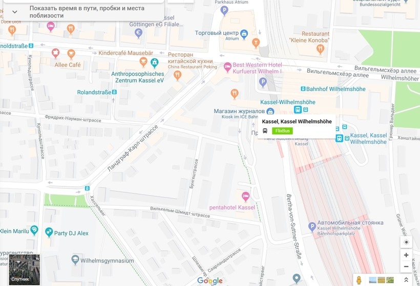 В Касселе автобусы приезжают на две различные остановки, расположенные в разных частях города. Утренний автобус довезет вас до остановки Kassel Kaufungen на Leipziger Straße 36. Она расположена где-то на окраине города, если вы турист, то вам туда не нужно. А вот дневной и вечерний рейсы следуют до остановки Kassel Wilhelmshöhe station, расположенной на Willy-Brandt-Platz 1.