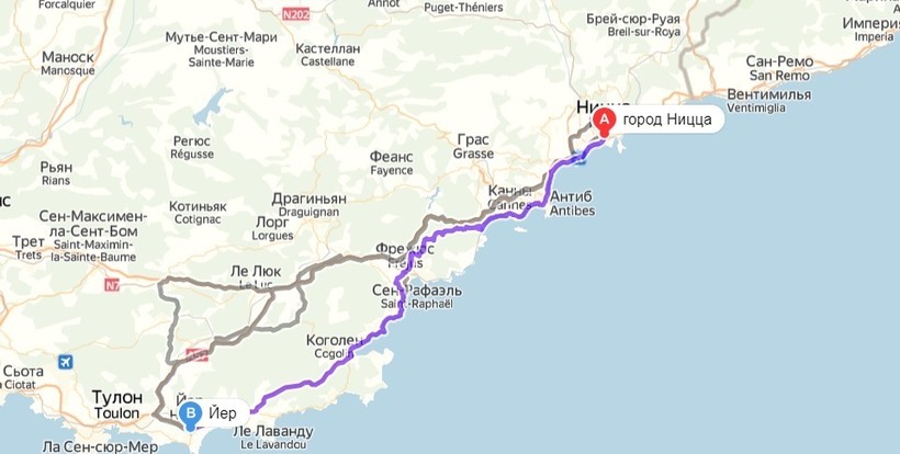 Йер, Иль-де-Франс — Ницца — маршрут на карте