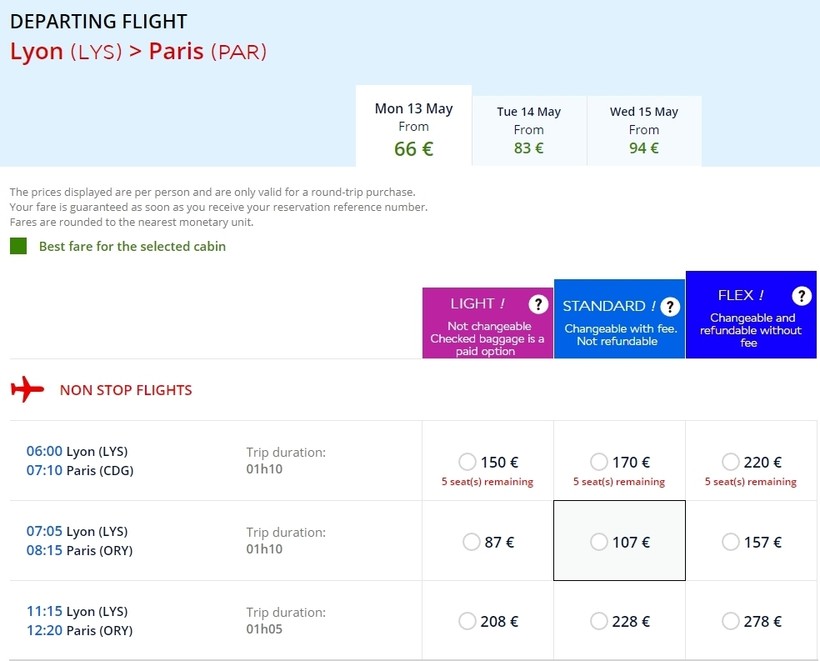 Перелет из Лиона в Париж занимает чуть больше часа. Ну и дополнительное время придется потратить в аэропортах.