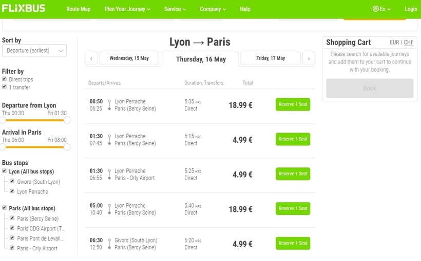 Маршрут обслуживают две известные в Европе компании. Есть рейсы от Flixbus.