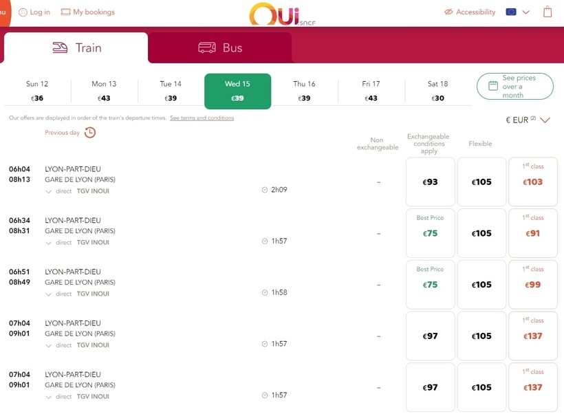 Ниже приведена информация о том, сколько часов вам потребуется, чтобы добраться от Лиона до Парижа, а также приведена примерная стоимость проезда (средняя цена билета) на том или ином виде транспорта.