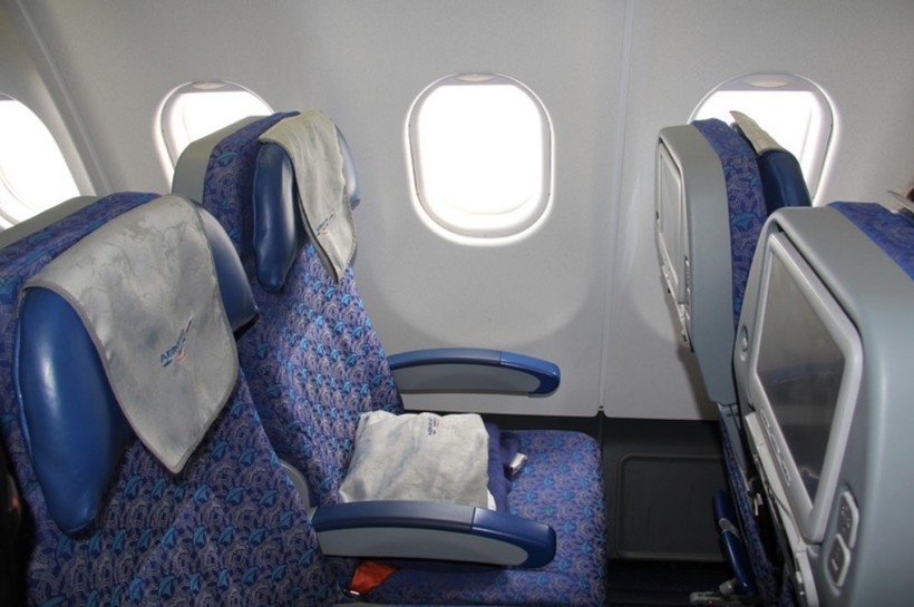 Сам самолет достаточно чистый и ухоженный, даже в туалете. Не прям чтоб стерильно (люди таки умеют быть свиньями), но вполне сносно. Расстояние между креслами достаточное, судите сами: