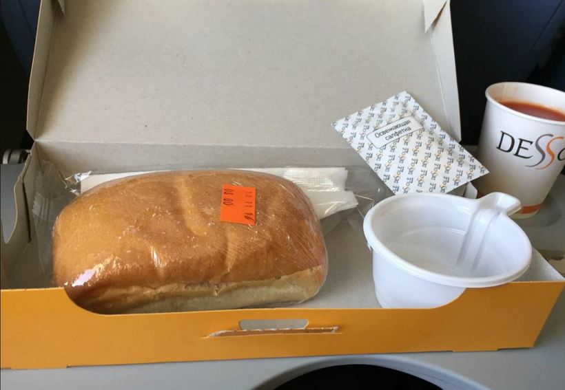 Покормили большим и вкусным бутербродом, а также маленькой пачкой сока. Это, как говориться, мелочь, но приятно.