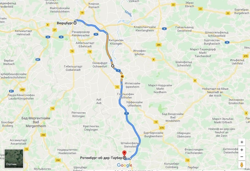 Вюрцбург — Ротенбург-на-Таубере — маршрут на карте