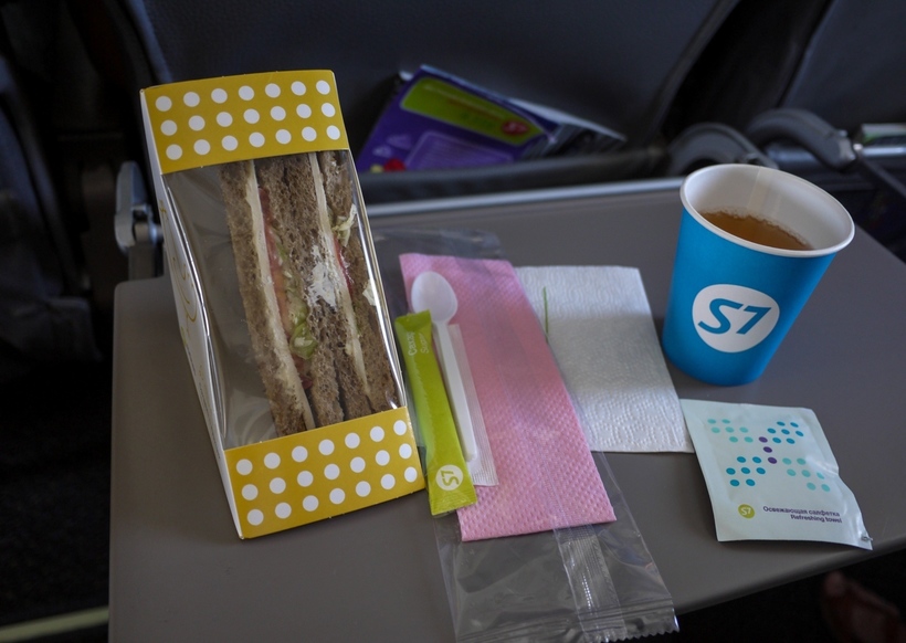 - при этом, в S7 мне предложили сэндвич с курицей и напитки, чего нет у детища Аэрофлота;