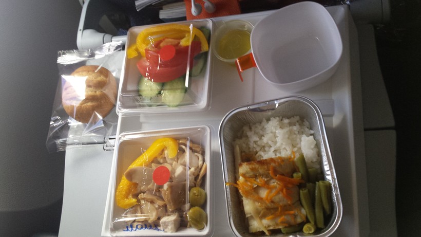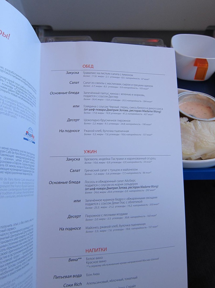 Порадовало состояние самолета (конечно, судить я могу только по внешней обшивке и салону) и отзывчивость стюардесс. На обед мне подали вот сколько всего:
