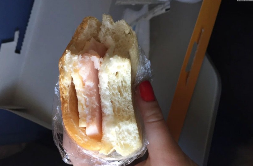 - еда просто ужасная. Небольшой сэндвич с сыром, колбасой и листком салата — вот все, что подали за четыре с половиной часа перелета;