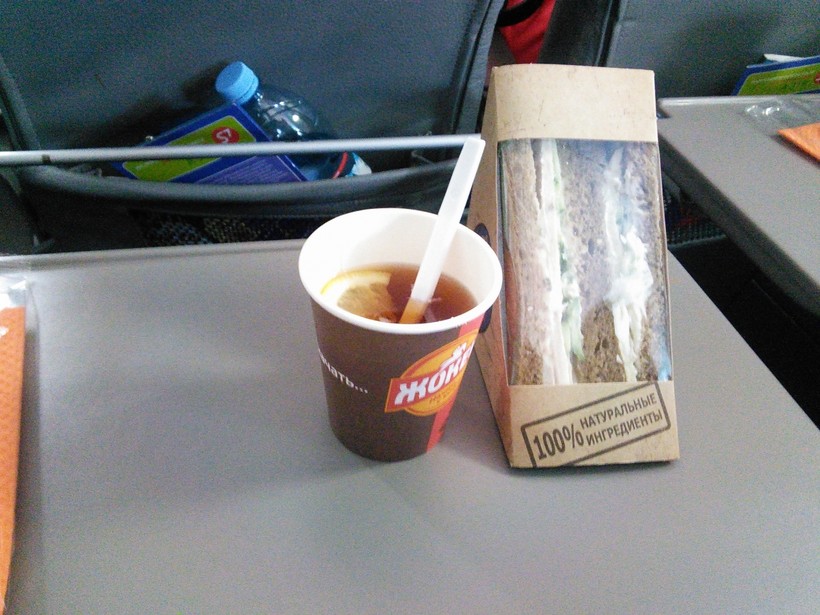 Если хотите узнать насчет питания, то на таких рейсах не предусмотрена подача горячего. Это же всего три часа. Относительно сухпайка, то зависит все от авиакомпаний. В S7, например, давали вкусный сэндвич. Вот вам фото, успела зафиксировать еще до того, как он пропал в моем желудке. :)