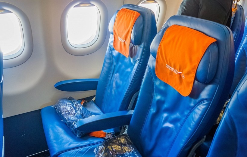 Салон самолета достаточно старый и явно выдает его почетный возраст: