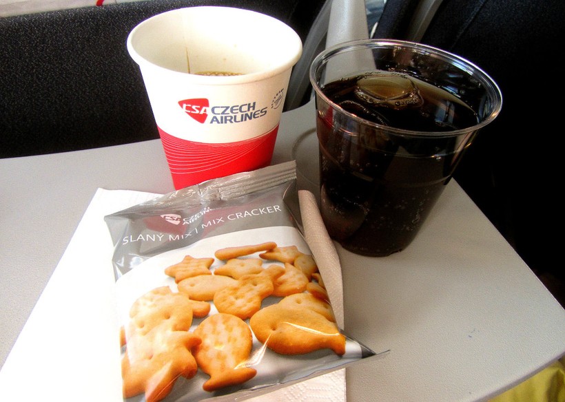 Когда передо мной поставили поднос, сразу же промелькнули мысли и кризисе и воспоминания об обеде на чешских авиалиниях. Да, я осталась голодной (ибо не ем фаст-фуд), но зато рядом были друзья, которые с удовольствием схомячили и мой бутерброд тоже.