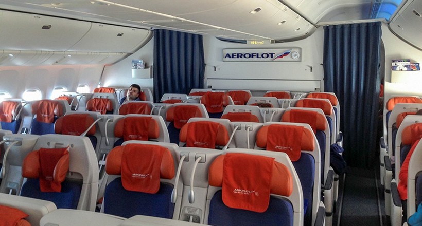 Все началось еще с регистрации, которую я предварительно прошла онлайн. И недаром, не пришлось долго ждать в аэропорту Шереметьево-2. Выбрала себе место в седьмом ряду, хотя после нескольких перипетий, в итоге я летела на тринадцатом. :) Самолет попался шикарный — Боинг-777. Это вам не шутки, машина очень крепкая и громадная. Впечатлило. Но более всего приятно удивил салон самолета: