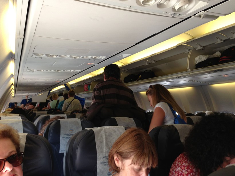 Зайдя на борт, заметила, что кресла маленькие и сам салон назвать просторным очень трудно. Крупным людям в таком транспорте будет неудобно. Поэтому рекомендация: пассажирам выше 170 см не стоит пользоваться услугами этого лоукостера, ну а если вы согласны терпеть неудобства этих три часа, тогда вопросов нет. :)