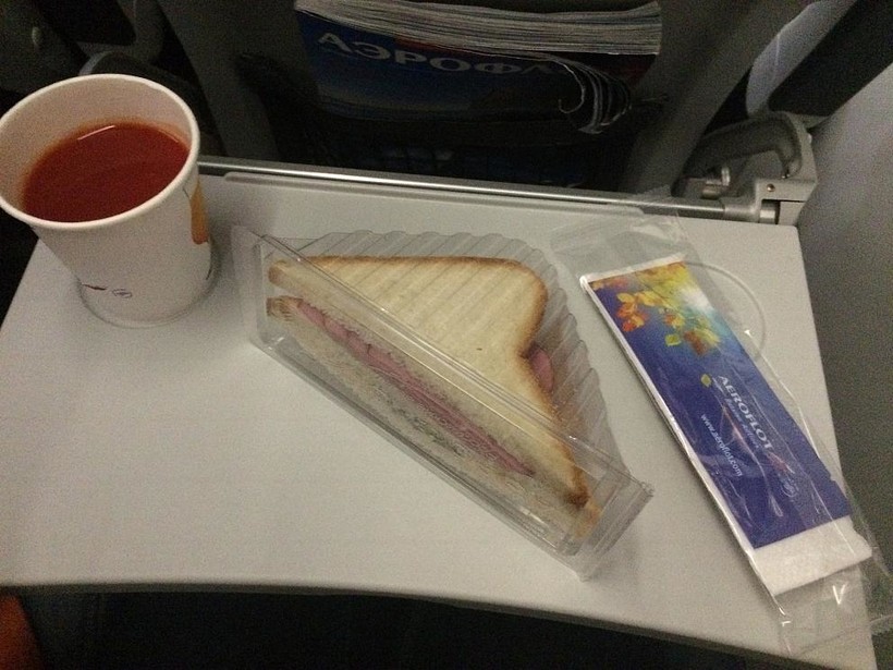 Вкусные бутерброды! Вообще, еда на рейсах Аэрофлота достаточно хорошего качества. Но за эти сандвичи с ветчиной отдельное спасибо, потому что проспали, чуть не опоздали на рейс и не позавтракали.