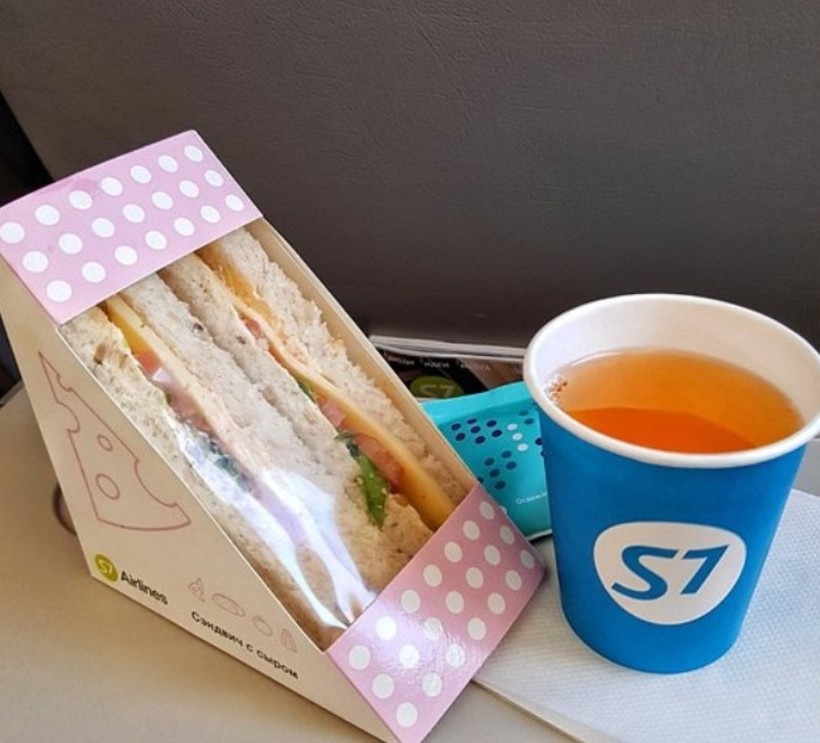 - еда так себе (кормили сэндвичем с курицей и сыром + чай или сок);