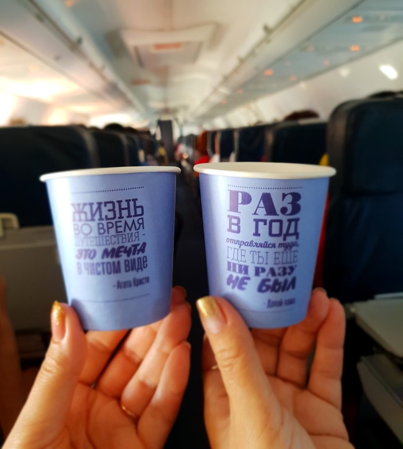 - развлекаться на борту можно было, только делая фотографии с фирменными стаканчиками авиакомпании;
