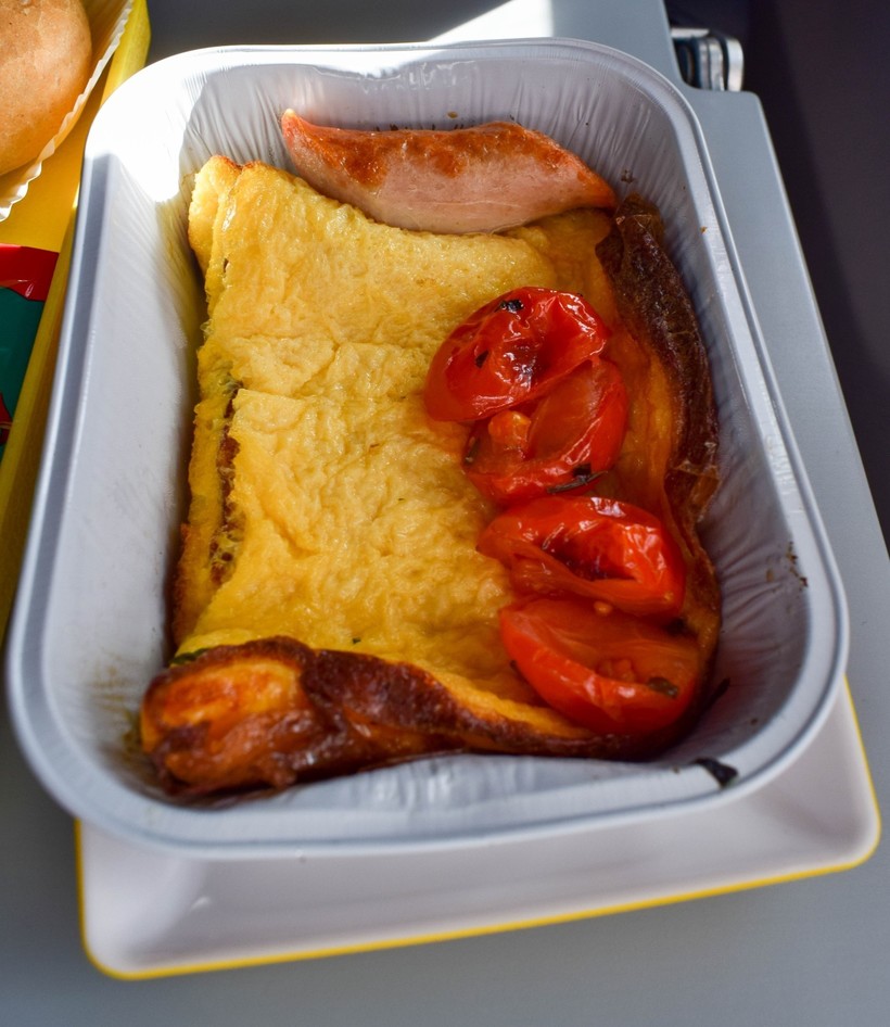 После взлёта всем пассажирам предложили напитки: либо воду, либо газировку. Всё, на этом выбор заканчивается. Горячее питание тоже входило в стоимость. От Москвы до Красноярска мы летели 4 часа 30 минут, за это время покормили один раз, это был завтрак. Всё довольно вкусное, мне понравилось.