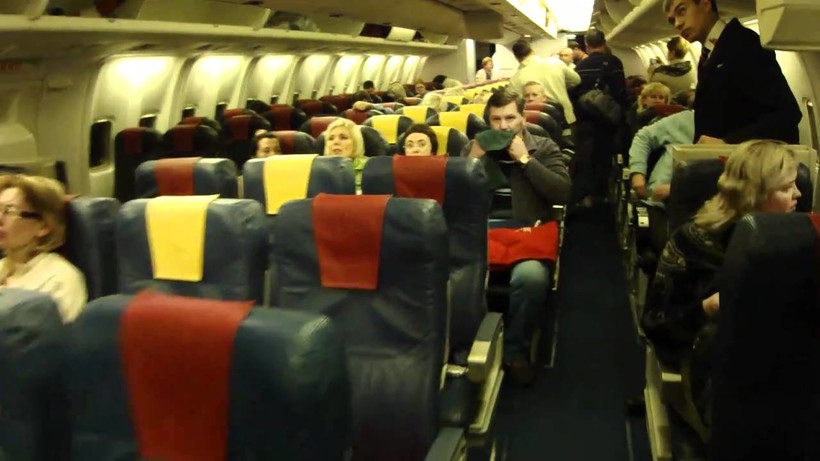 Расстояния между креслами достаточные, чтобы коленки не упирались. Если есть возможность, лучше выбирать места у борта, а не в середине салона.