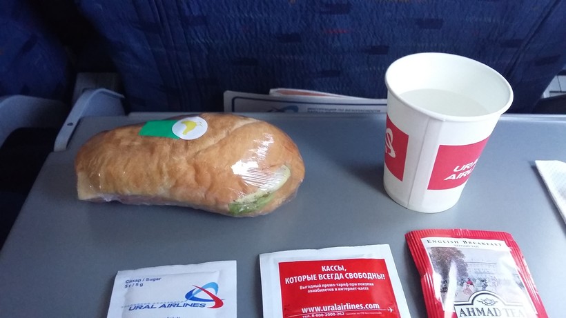 На двухчасовой полет такого перекуса должно быть достаточно. Но качество сока (его что разбавляли?) и чая очень плохое. Может, я и вредничаю, но очень уж невкусно было «это» пить.