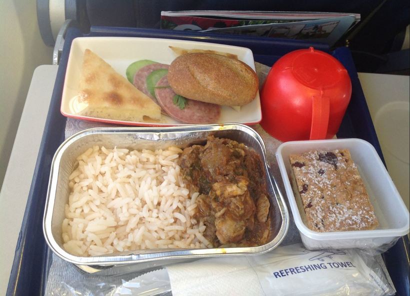 Питание среднее, не скажу, что от шеф-повара, но за такую стоимость прекрасно. Если летишь в обед, то горячее на выбор из двух блюд, на завтрак обычно подают сэндвичи, а кофе, чай, сок или воду можно выпить не один раз.