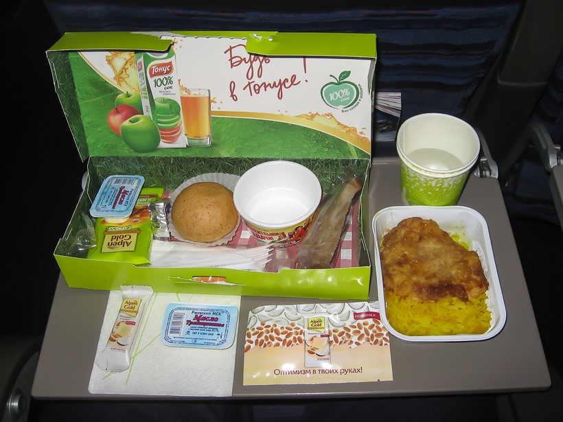 Понимая, что купили билет за 6 т.р. ты понимаешь, что деликатесов тебе не дадут, но ведь надо придраться:) В общем, как вы догадались, кормили плохо. До нас не дошла возможность выбора, поэтому рыбные котлеты со вкусом "ничего" не спасли от голода. Самое интересное было то, что сначала напоили напитками, а потом прошло где-то минут сорок, и только потом дали обед. А еще отсутствие карманов на спинке сидения меня всегда расстраивает.