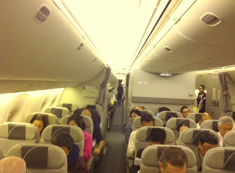 Вылетел я в 8 часов вечера. Посадка прошла быстро и без происшествий. Самолёт снаружи выглядел чистым и новым. Внутри тоже был неплох. Там присутствовали и удобные сиденья, и Wi-Fi, и сенсорные экраны с доступом к большой коллекции фильмов и музыки, и многое другое.