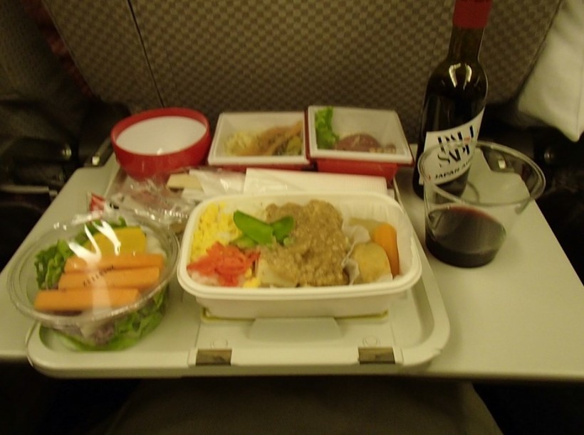 Замечательное, я бы сказала, ресторанное меню даже для эконом-класса (японская и европейская кухня, кормили дважды). В течение полета все напитки (вода, чай, кофе, саке, белое и красное вино, пиво и даже водка) подаются без ограничений. Кстати, отведайте сливового вина, еще спасибо мне скажете! ;)