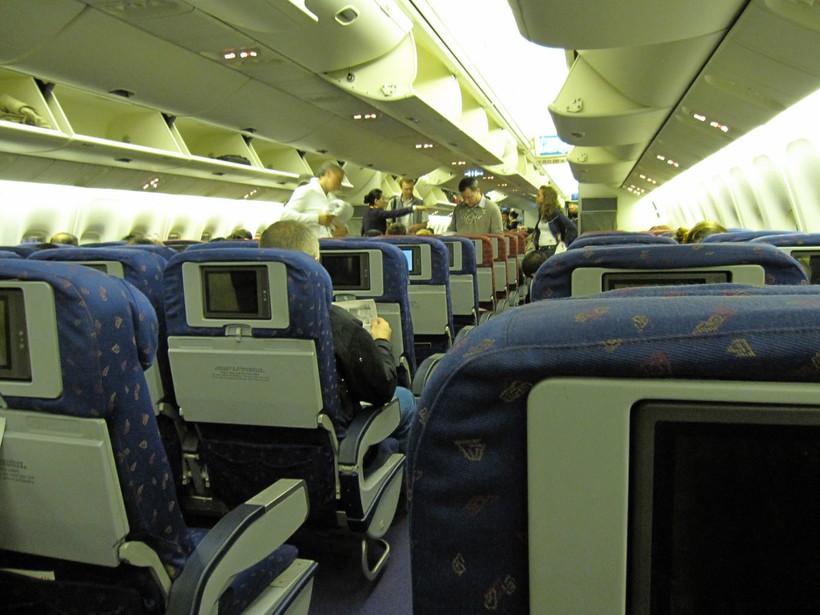 В аэропорту регистрация прошла быстро. Уже через несколько минут после того, как я зашёл внутрь, можно было идти в самолёт. Снаружи он выглядел старым и слегка потрёпанным. Однако салон вызвал положительные эмоции: