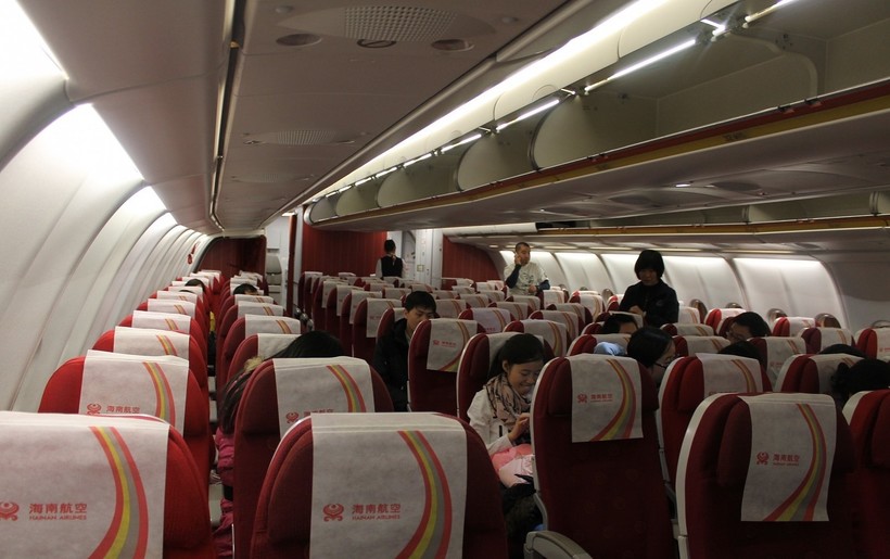 Вылетали из московского аэропорта «Шереметьево». До Чэнду самолёт летел чуть больше 8 часов, а от Чэнду до Токио ещё 4 часа 30 минут. Самолёт Airbus A330, думаю, летает довольно давно, по виду старенький, это видно невооружённым взглядом. В салоне бизнес-класса кресла намного лучше выглядят и места прилично больше. В экономе же всё более, чем скромно.