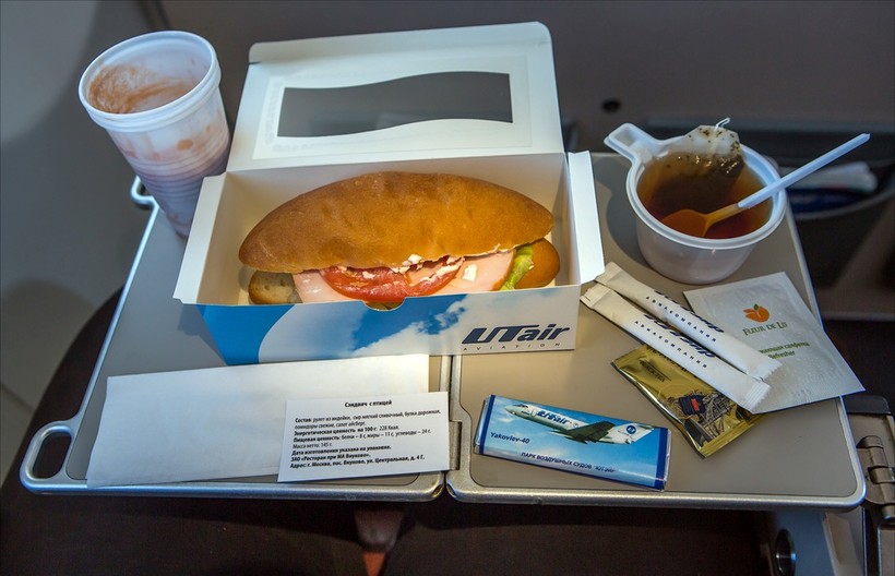 В питание входит достаточно вкусный большой бутерброд, а также сок на выбор. Лететь относительно недолго, так что этого вполне достаточно, чтобы перекусить.