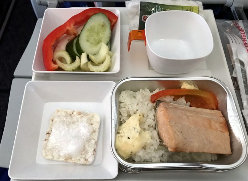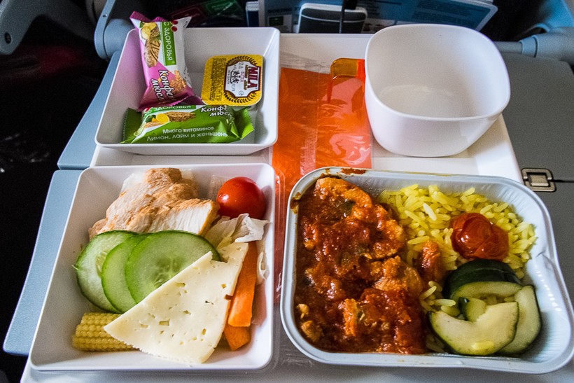 На борту кормят дважды. Сразу после набора высоты предложат напитки и раздадут меню, чтобы вы сразу могли определиться, что возьмете. Выбор стандартно между двумя горячими блюдами, плюс набор холодных закусок. Часов через 5 покормят второй раз, обычно это легкий перекус. Моей любимой опцией у «Аэрофлота» является заказ специального питания при покупке билетов.